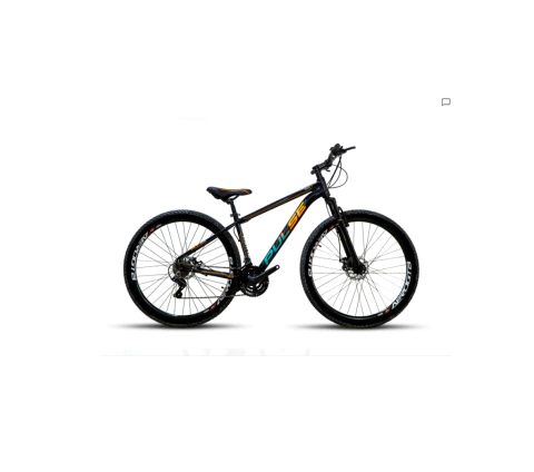 A Pulse Quick Aro 29 impressiona pelo seu design moderno e cores marcantes: Preto com detalhes em Laranja e Verde Acqua. Equipada com 21 velocidades e freios a disco mecânicos, é uma bike versátil, confortável e segura para o uso diário ou para quem quer explorar novos caminhos aos finais de semana.